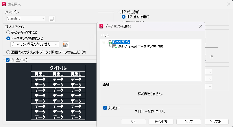 1.作成したデータリンクを選択すると、図面上にプレビューが表示されます。