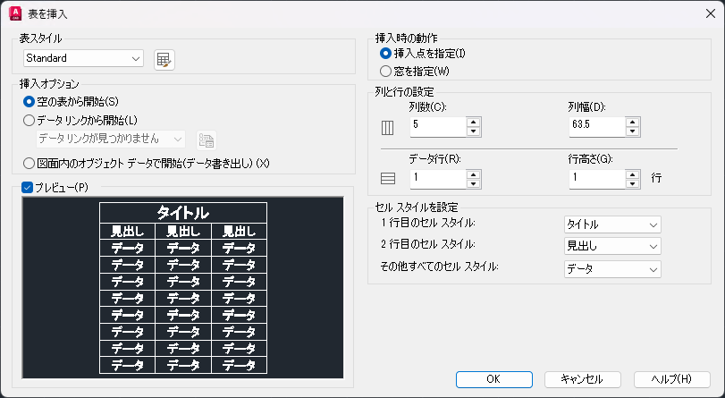 また、表スタイルをあらかじめ定義しておくと、フォントや罫線のデザインが自動的に統一され、複数の図面で一貫性のある表を効率的に作成できます。