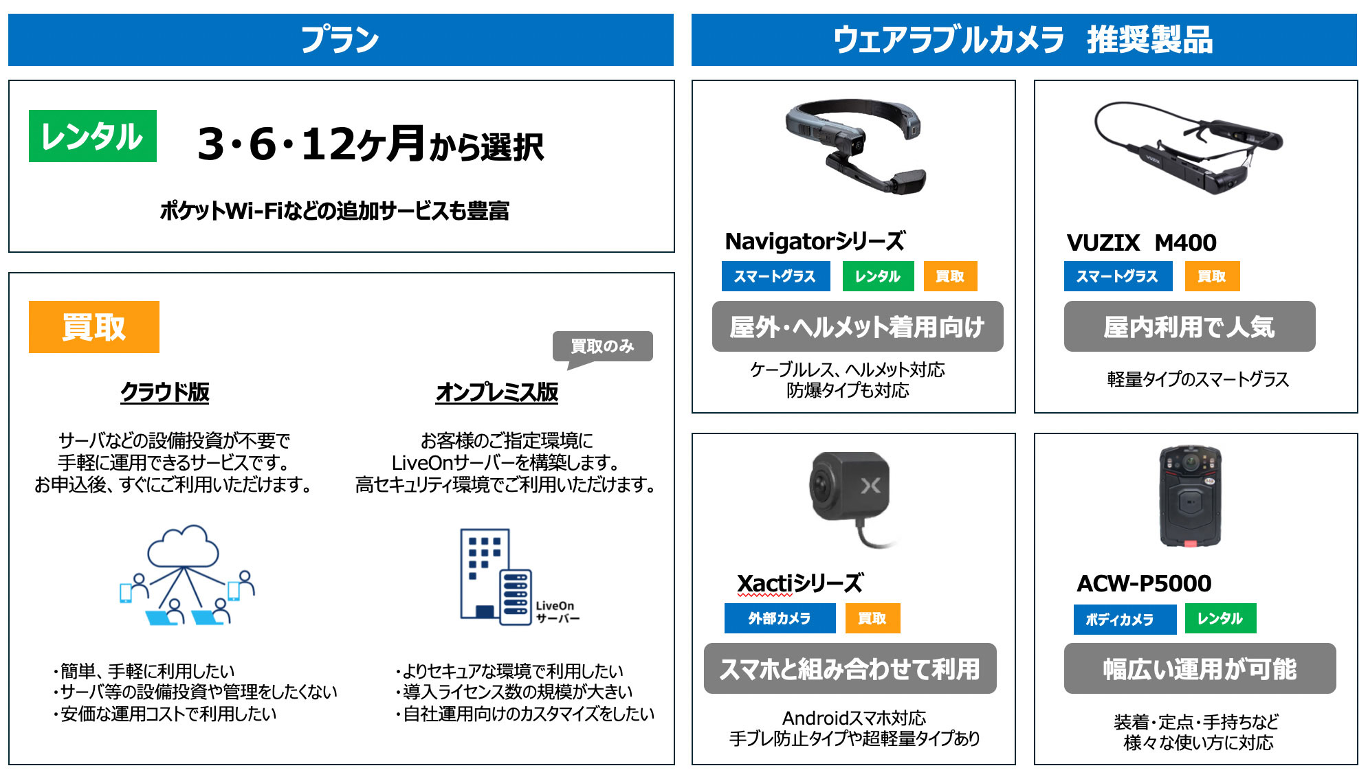 - スマートグラスやボディカメラなど、現場に最適なカメラをご提案